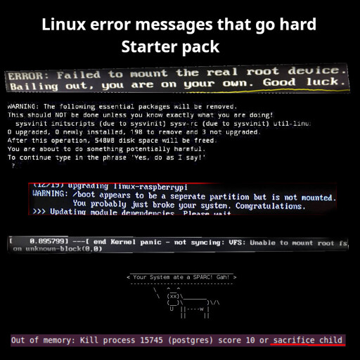 People would read the second message, type the yes prompt, break their system. But still claim that it was linux’s fault, and that the OS doesn’t work.