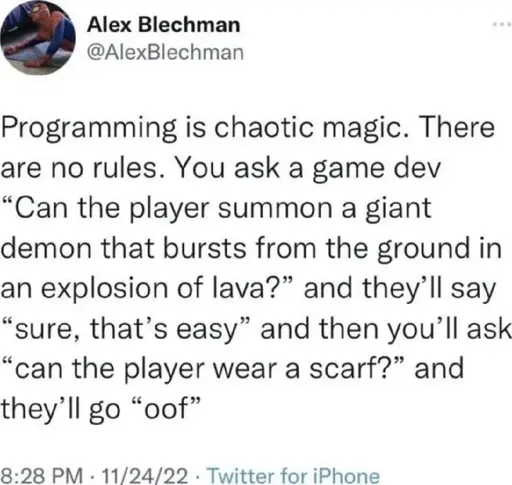 arrow-up11.25Karrow-down1imageSorry, can't do scarves.sopuli.xyzGork@sopuli.xyz to Programmer Humor@programming.dev · 15 days agomessage-square108linkfedilink