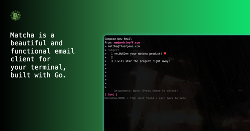 arrow-up158arrow-down1external-linkMatcha - A powerful, feature-rich email client for your terminalgithub.comcm0002@infosec.pub to Linux@programming.dev · 5 days agomessage-square8linkfedilink