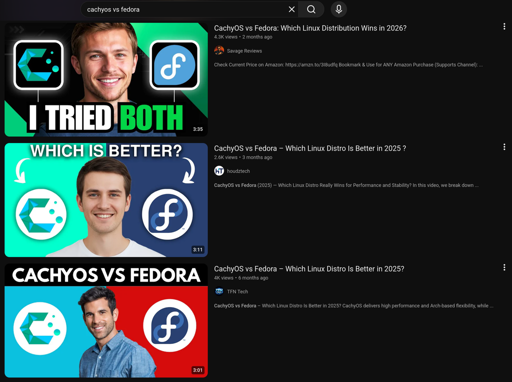Both are wonderful. I still recommend Fedora to most new users, but I decided to test drive CachyOS almost year ago and then never went back. Cachy is so cozy.
