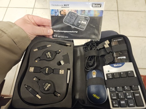 Just wanted to share a pretty sic “notebook kit” that I found at a thrift store. I didn’t buy it since I don’t need it (I’m carrying around an XTRFY M42 RGB PINK and a Deltaco WK90B TKL). But the fact that it even has RJ11 connectors just blew me away.