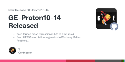 CannonGoBoom@lemmy.world to Linux Gaming@lemmy.mlEnglish · 4 months agoGE-Proton10-14 Releasedplus-squaregithub.comexternal-linkmessage-square0linkfedilinkarrow-up11arrow-down10