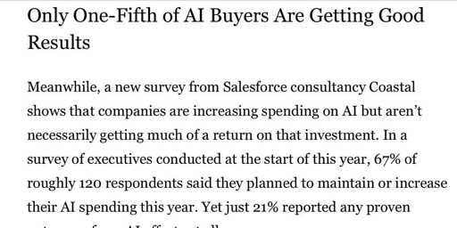 arrow-up11arrow-down1external-link61% of customers report no ROI or disappointing ROI on their AI investments. - Futurology Todayplus-squarefuturology.todayLugh@futurology.today to Futurology@lemmy.mlEnglish · 10 months agomessage-square0linkfedilink